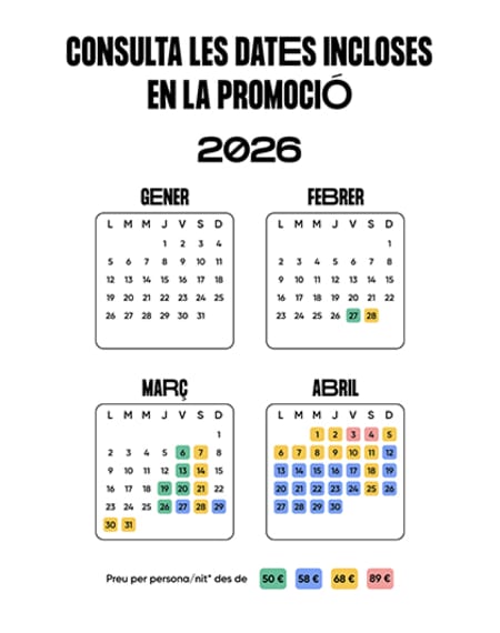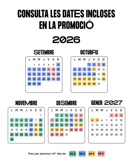 - Reserva del 24/11/2025 al 01/12/2025, o fins exhaurir el cupó de 20 habitacions per nit.