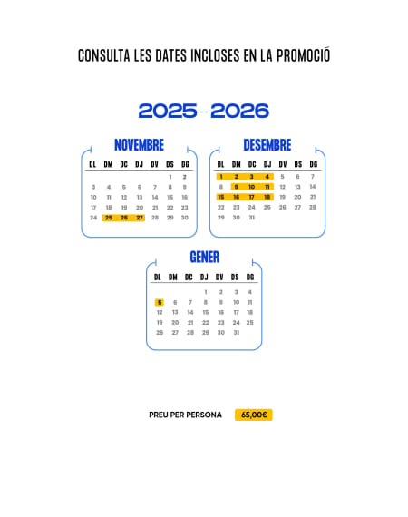 - Preus limitats a un màxim de 30 habitacions per data vàlida per a reserves fetes fins al 05/01/2026.