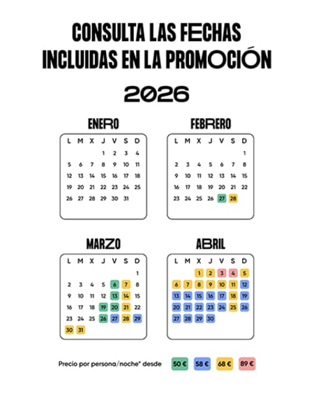 - Precio válido para estancias según calendario estipulado.